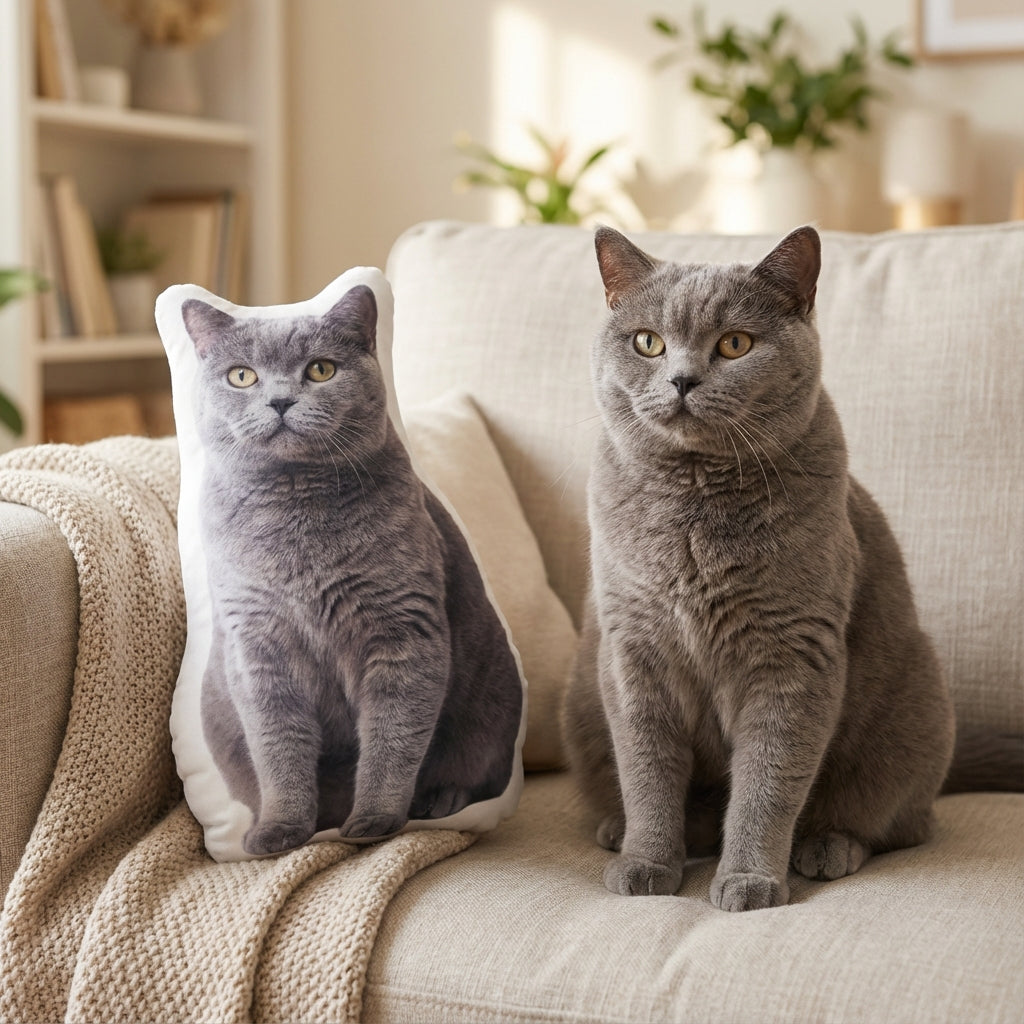 Our custom cat pillow captures the spirit and unique personality of your beloved feline by transforming a favorite high-resolution photograph into a soft, shaped pillow. Whether your cat is curled up beside you every day or lives on forever in your heart, this pillow helps you feel close to them whenever you need comfort.